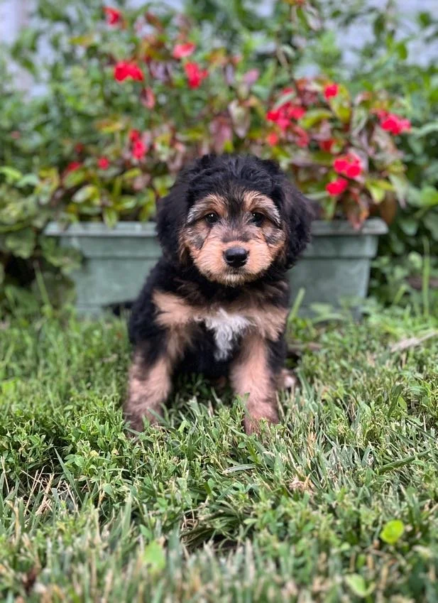 We are super excited to introduce to you our adorable, tri-color Miniature Bernedoodle puppies. Where Miniature Poodle meets Bernese Mountain dog, you get the perfect blend of snuggle and spunk.